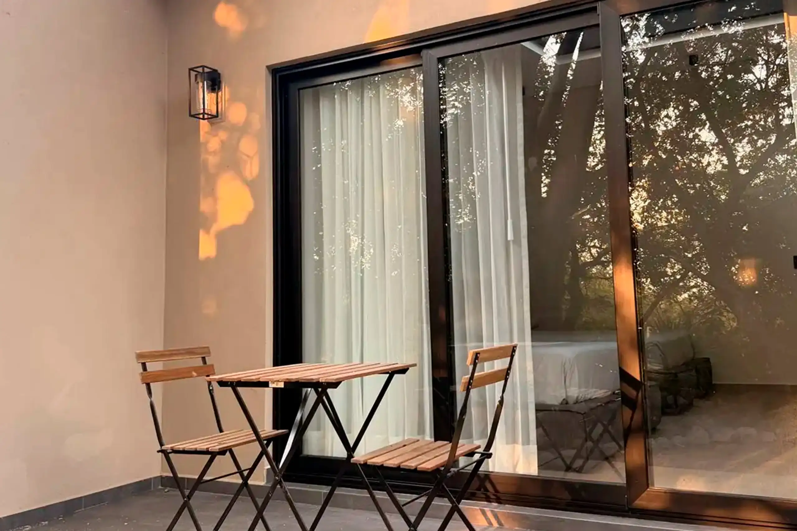 Inspirada en la estabilidad y la calma del elemento Tierra, esta habitación ofrece dos camas matrimoniales ideales para familias, niños o grupos pequeños. Su terraza con vista al jardín lateral y su diseño en tonos neutros crean un ambiente fresco, luminoso y equilibrado. Es un espacio pensado para un descanso profundo y una estancia cómoda sin perder la elegancia boutique de la casa.